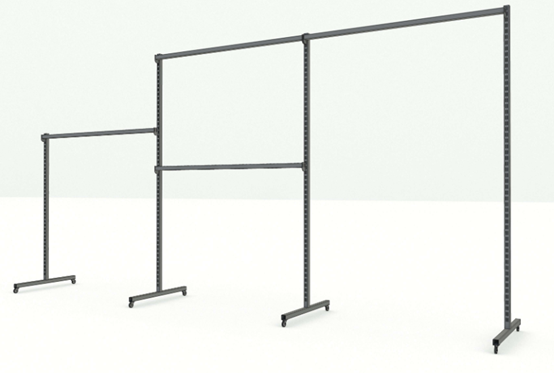 Ten stojak na odzież został zaprojektowany z solidną metalową ramą i regulowaną wysokością, zapewniając elastyczne rozwiązanie dla sklepów odzieżowych, salonów wystawowych i wystaw. Konstrukcja typu knock-down ułatwia montaż, demontaż i transport, a elegancki design zapewnia nowoczesny i profesjonalny wygląd. Idealny do prezentowania odzieży w przestrzeniach handlowych lub schludnego organizowania ubrań.
